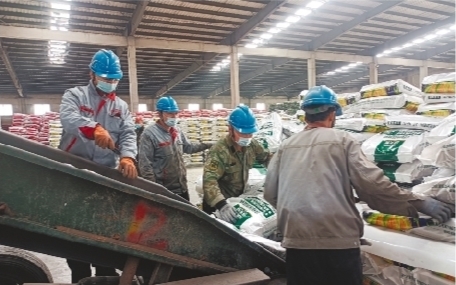 辽宁金正大生态工程有限公司员工正装车发运玉米专用肥。 吴 可 摄